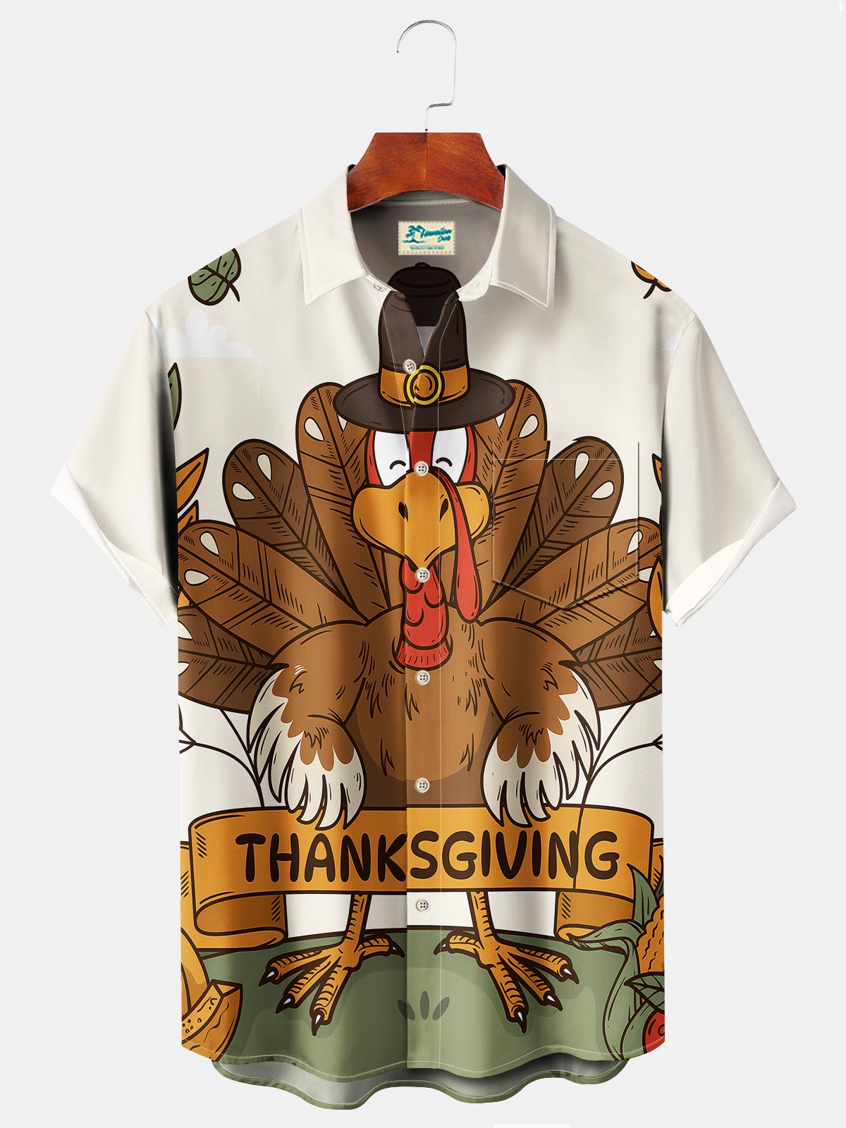 Beach Holiday Thanksgiving White Men's Hawaiian Shirts Turkey Stretch Plus Size Aloha Camp Button-Down Shirts