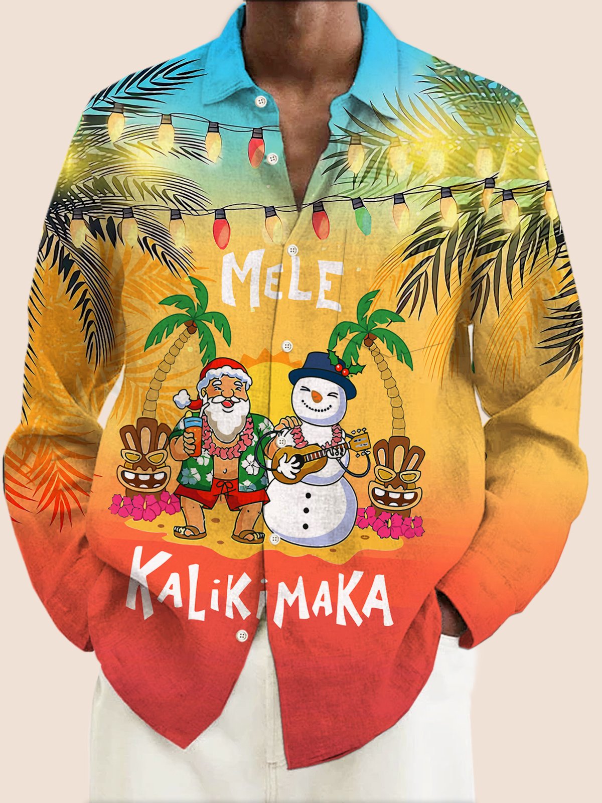Christmas Men's Hawaiian Shirts Gradient Mele Kalikimaka Fun Santa Pocket Shirts