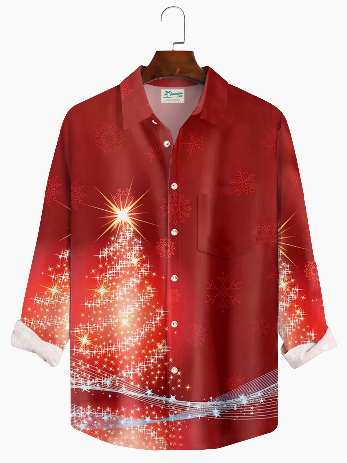 JoyMitty Christmas Printed Men's Button Pocket Long Sleeve Shirt