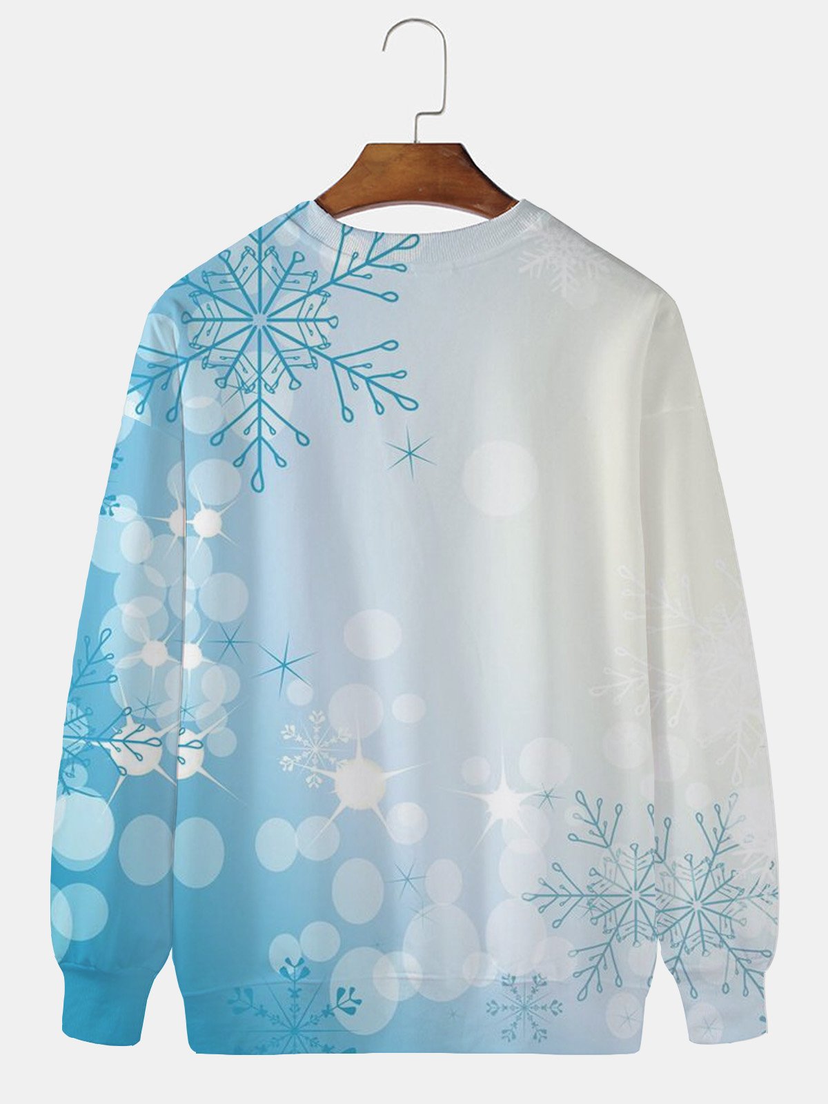 JoyMitty Men Christmas Snowflake Ombre Print Crew Neck Sweatshirt